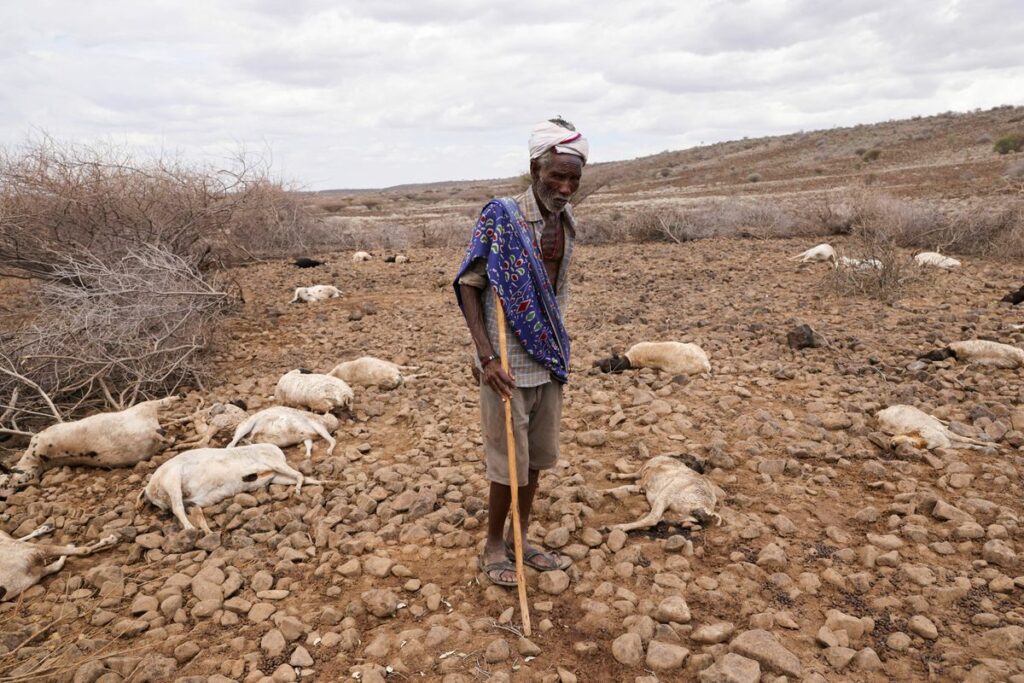 Mamo Konchora, a livestock herder from the Gabra tribe, could do nothing to help the last remaining goat from his herd as it lay dying on its side.